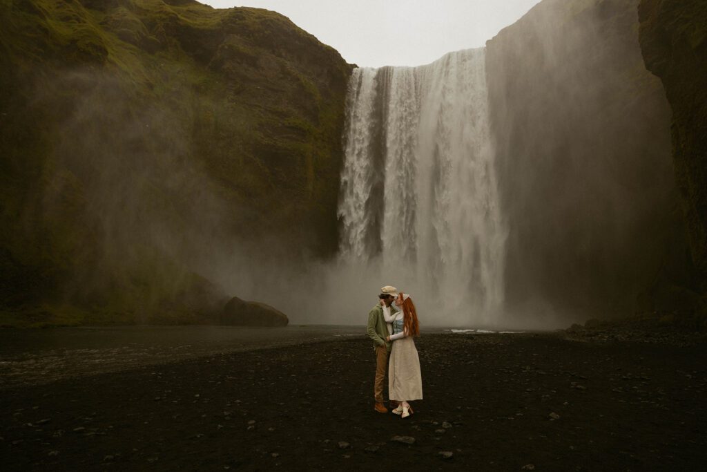 Last but not least is Seljalandsfoss, an unbelievably stunning waterfall along the South Coast of Iceland, about 2 hours from Reykjavik. What makes Seljalandsfoss unique is that there’s a path that stretches around the entire waterfall, so you can actually walk behind the waterfall in the summertime for a super magical experience. The waterfall is easy to get to from a parking area on the road, though the full path around the falls isn’t wheelchair-accessible. However, it’s easy to get gorgeous views even from the parking lot if you aren’t able to make the full trek! This is another location that gets very crowded, so it may not be the best choice for a vow exchange if you’re looking for privacy.